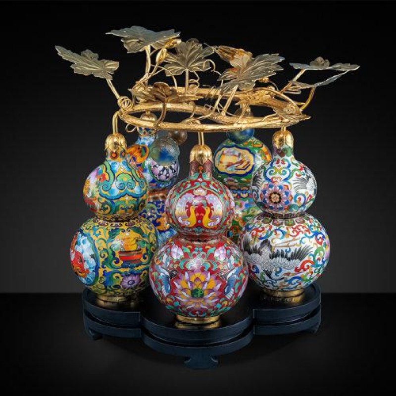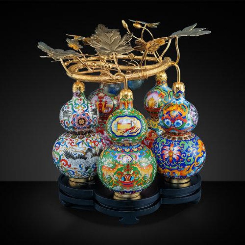 |  | 中藝盛嘉 中藝堂收藏品 张同禄 刘永森 霍铁辉 钟连盛 戴嘉林 景泰蓝五大家《五福泰瓶》摆件 $7114.3 |