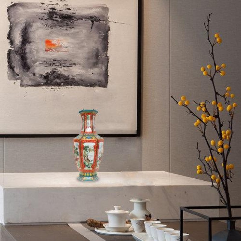Zhongyi Shengjia Jingdezhen enamel color hexagonal bottle antique hand-painted living room decoration home decor $182.9 |