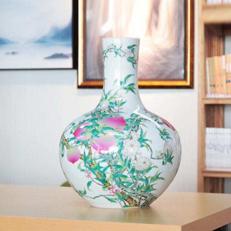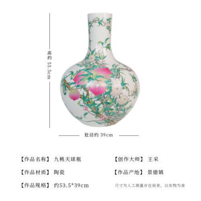 Zhongyi Shengjia Zhongyitang Collectibles Wang Cai Jingdezhen Pink Porcelain Nine Peach Sky Ball Bottle