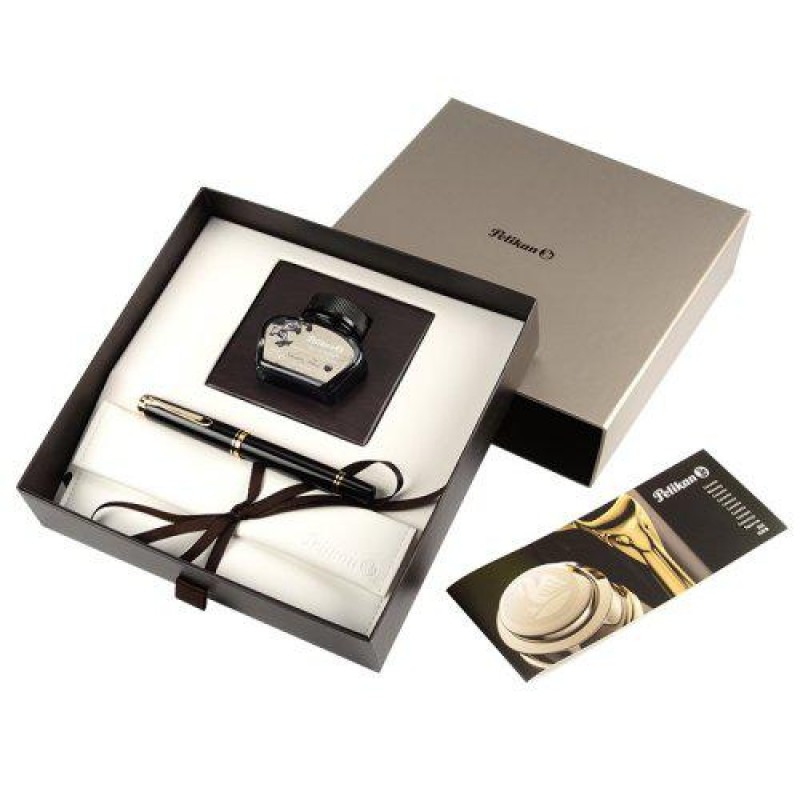Pelikan M400 14K Carved Gold Tip Ink Pen, Draeisman Line Resin Writing Pen Ink Set Gift Box